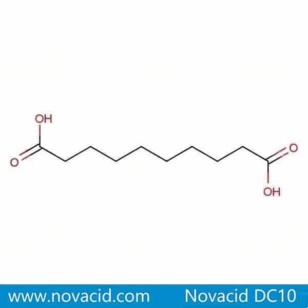 Sebacic Acid (CAS No. 111-20-6), also named decanedioic acid or DC10, is a high-purity long-chain dicarboxylic acid with a linear molecular structure of C₁₀H₁₈O₄. Produced by NOVACID with the renewable raw material castor oil or alternatively microbial fermentation of alkanes, it features stable chemical properties, low impurity content and excellent compatibility with various materials. It serves as a critical intermediate for manufacturing high-performance polymers, lubricants and specialty chemicals, delivering reliable quality for industrial-scale production and high-end application scenarios.