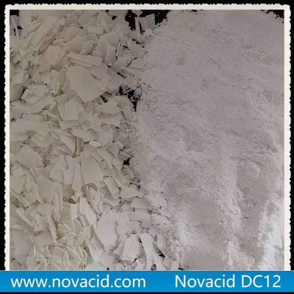 Dodecanedioic acid (CAS No. 693-23-2), also named 1,10-Decanedicarboxylic acid, DDDA or DC12, is a straight-chain aliphatic dicarboxylic acid with the chemical formula C12H22O4. Produced via an advanced bio-fermentation process exclusively by NOVACID. It is a white crystalline powder or flake with good thermal stability and chemical reactivity. As a key intermediate of fine chemicals, it is widely used in the production of high-performance polymers, specialty lubricants and pharmaceutical raw materials.