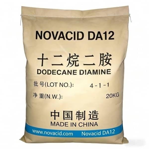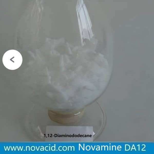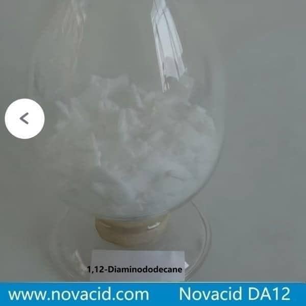 1,12-Diaminododecane (CAS No, 2783-17-7), also known as 1,12-dodecanediamine or dodecamethylenediamine, is an high-purity long-chain aliphatic diamine compound with the formula C₁₂H₂₈N₂, a flagship product of NOVACID with proprietary synthesis and purification technologies. Engineered for consistent quality and superior reactivity, this product meets the stringent requirements of global high-end manufacturing industries. As a key monomer, it forms stable amide linkages with dicarboxylic acids, enabling the production of high-performance polymers and specialty chemicals. NOVACID’s full-scale production facilities and strict quality management system ensure reliable bulk supply, supporting customers across automotive, electronics, and aerospace sectors with customized solutions.