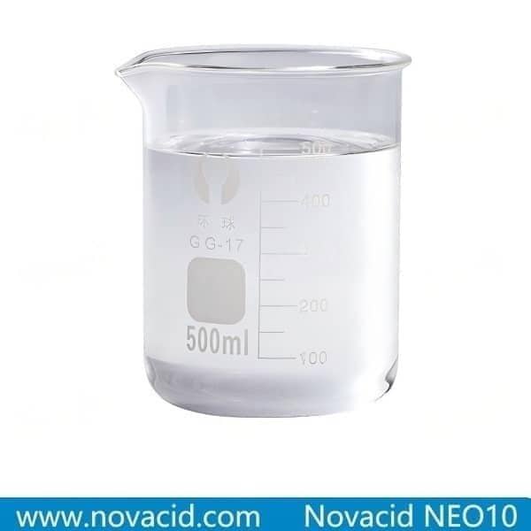 Neodecanoic Acid (CAS No. 26896-20-8), also known as Versatic Acid 10, is a synthetic carboxylic acid with a highly branched-C10 tertiary carboxylic acid. it is not a single compound but a mixture of isomers, each sharing the general formula C₁₀H₂₀O₂. The key to understanding its behavior lies in its branched-chain structure. This is unlike straight-chain carboxylic acids, impacting its reactivity and physical properties. The branched structure is responsible for its relatively low vapor pressure, a crucial factor in its industrial appeal. Lower vapor pressure translates to easier handling, reduced risk of volatile emissions, and enhanced safety in industrial settings. Its unique combination of properties—such as hydrophobicity, UV stability, and high reactivity—makes it a valuable component in adhesives, lubricants, coatings, and more. Novacid NEO10 can be replacement of Versatic Acid 10.